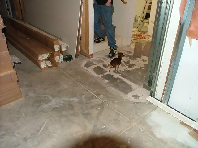 basement that is not yet finished, plus taking up the marble floor in
