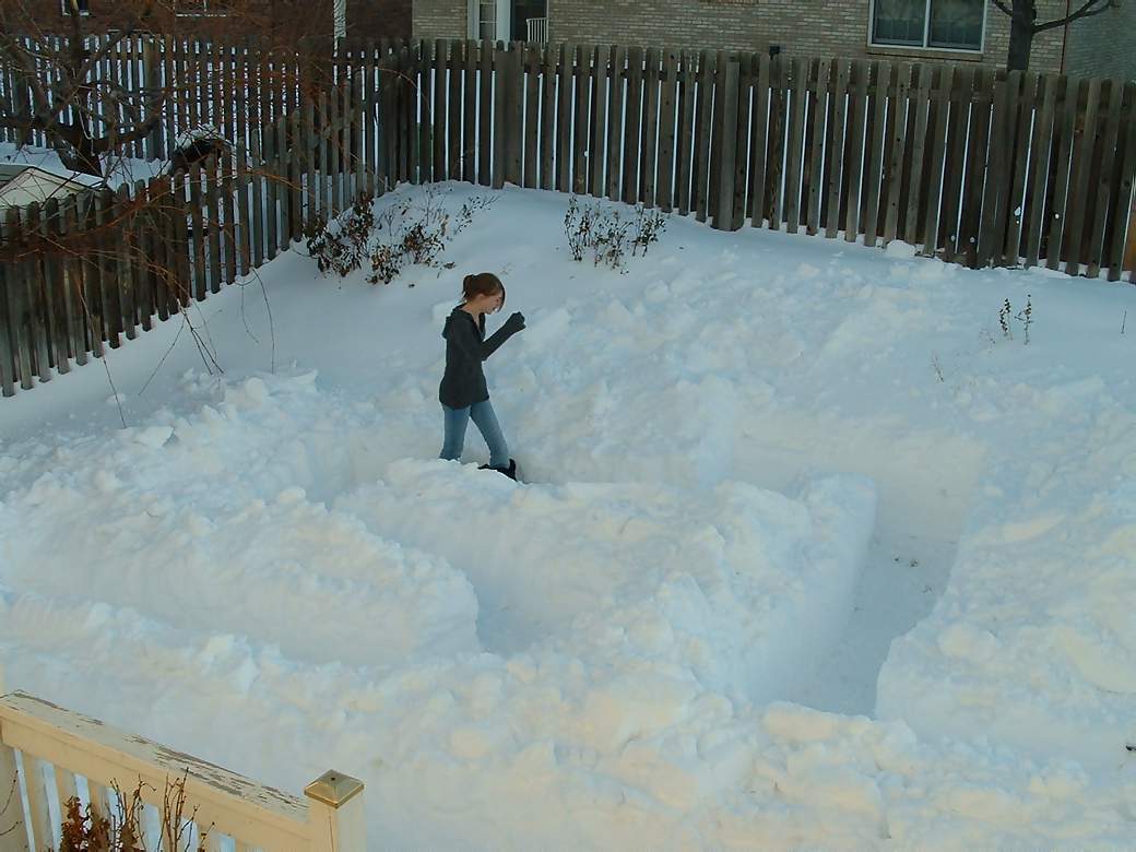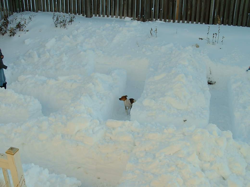 large drifts in our back yard to dig a snow maze for Milo to run