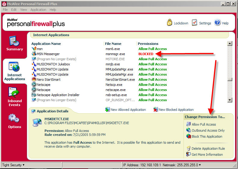Use Protection Software: There are also a wide variety of software packages out there that will allow you to permit and restrict web sites that your children can visit. NetNanny is one such product. There are many others - the Internet Filter Review web site provides a wealth of info, as well as software comparisons. Many of these types of software allow you to prevent access to suspicious web sites, monitor chat room and email activities, and even send you alerts of suspicious activities that are taking place. Even the more sophisticated personal firewall software has the ability to restrict application access to the Internet. ZoneAlarm, for example, has the ability to allow or disallow any application of your choosing access to the Internet. If you feel your children's usage of their favorite chat program has gotten out of hand or is suspicious, simply turn off access, talk to them about it, and then come up with a strategy for safer usage. For those of you who use Comcast broadband Internet service, McAfee Personal Firewall comes to you free of charge. I use McAfee, although I have been a ZoneAlarm fan for many years - because it is free with my current service. The McAfee product provides a very robust set of features to allow protect you and your system from harmful activities.